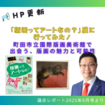 2025年12月4日 / 最終更新日 : 2025年12月4日 machikoe1976aihara_machida 文化スポーツ 「版画ってアートなの?」展に行ってみた! ※「版画ってアートなの?」展は2025年9月21日に終了いたしました。アーカイブとして記事を載せています。 町田市立国際版画美術館で出会う、版画の魅力と可能性 皆さまは、どのくらいの頻度で美術館に行きますか?調査によると […]